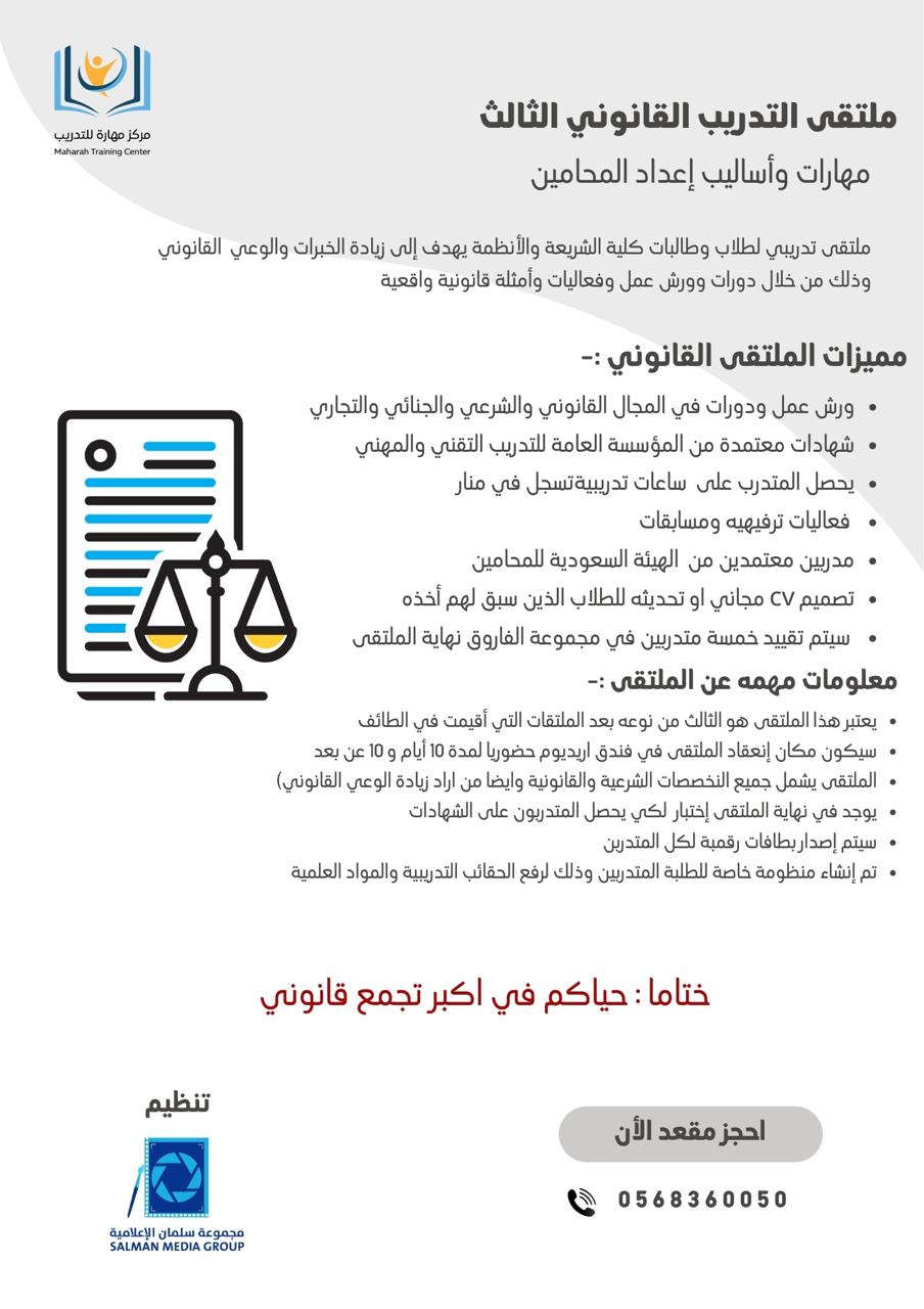 ملتقى التدريب القانوني الثالث ( مهارات وأساليب إعداد المحامين)